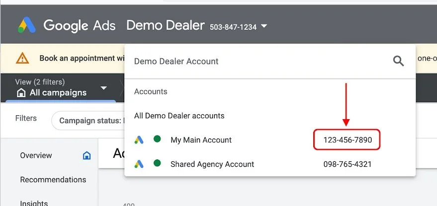 Sharing Google Ads Account Access with VIN IQ - Automated Sharing
