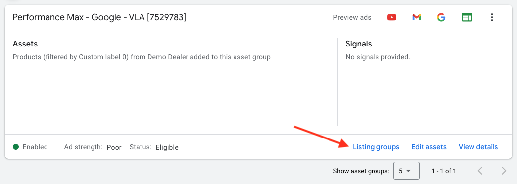 The labels under the listing groups must be correctly configured in order for the VIN IQ feed to properly work with the Performance Max campaign that was just created. As a best practice, please check this configuration once the campaign has been published.